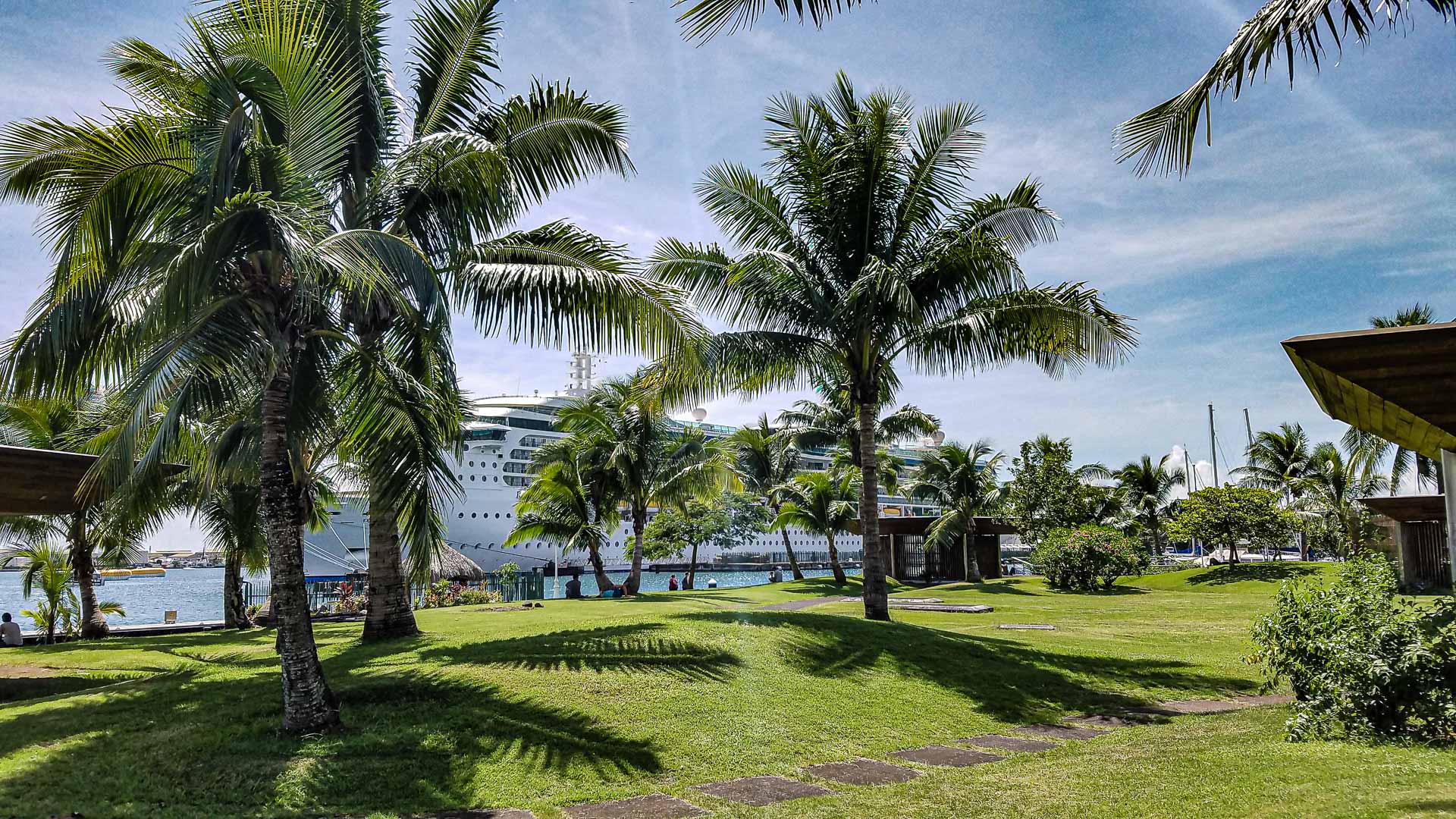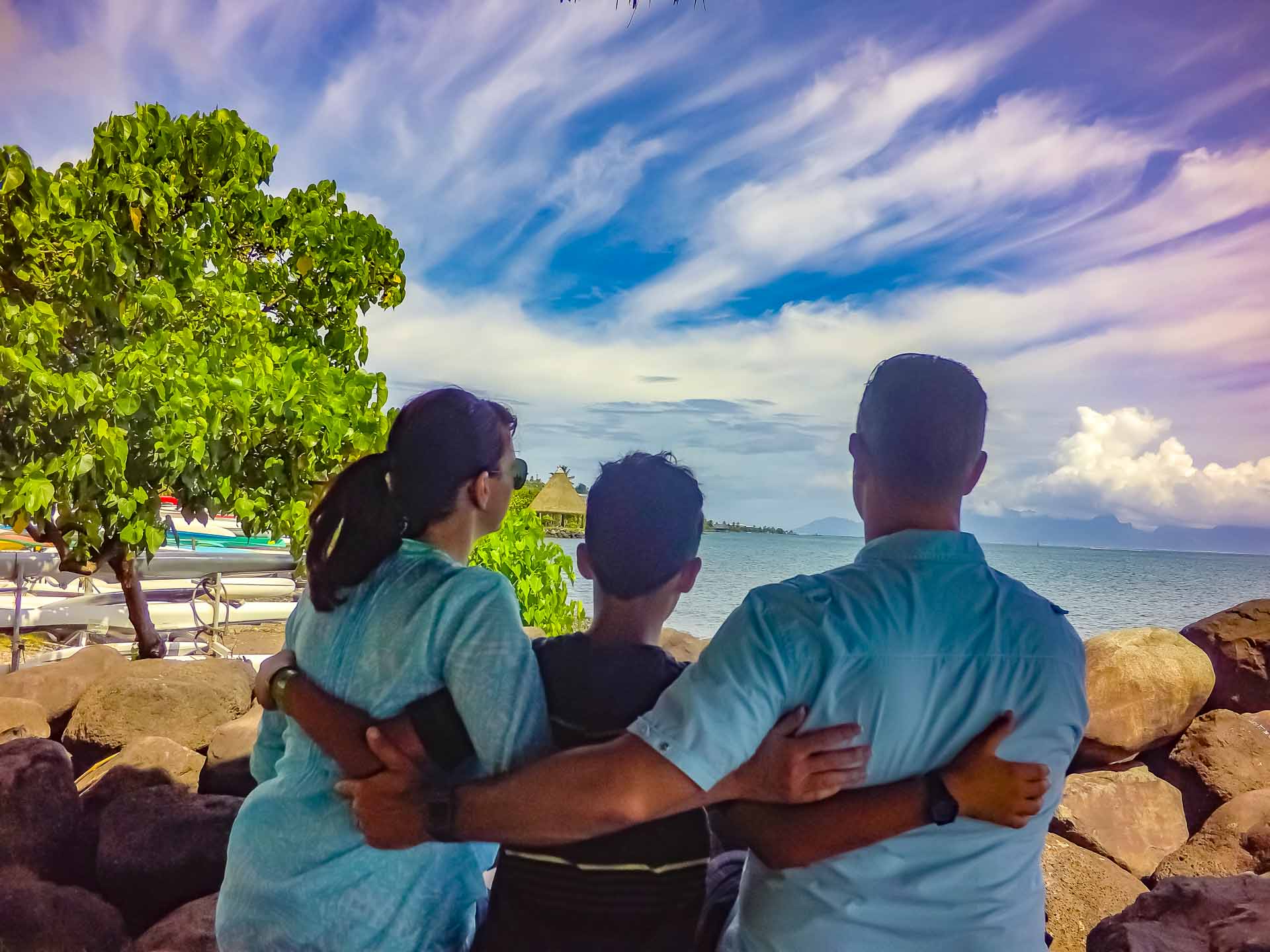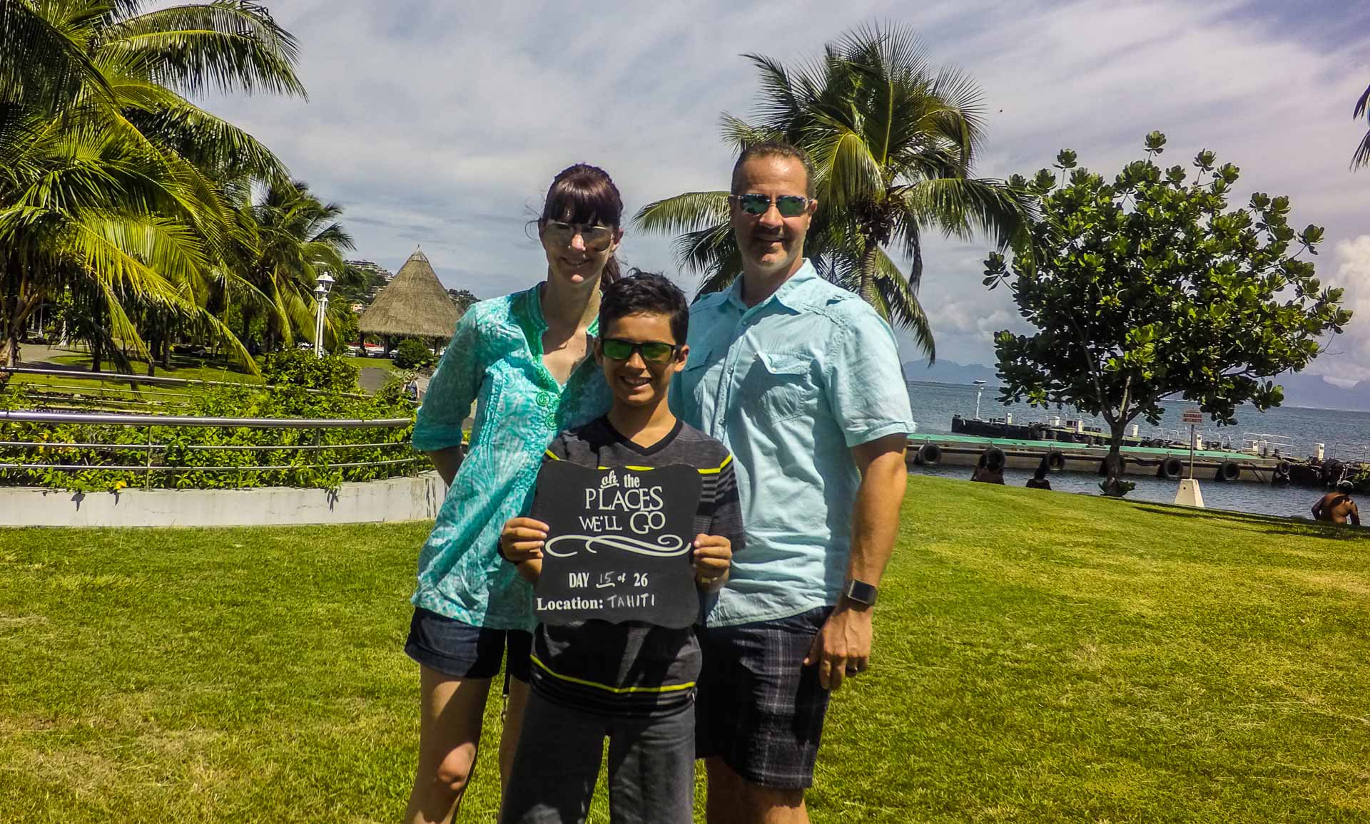 Day 15 of our 26-day Epic Adventure through the South Pacific brought us to the capitol of Tahiti, Papeete.  This is the first time we’ve walked on land in 5-days.  What a weird sensation. We stayed in the main town and did not venture across the island. We decided to not do any tours and just walk in to town and see what we could find. This is not the romantic South Pacific oasis you see in photos. That’s at the resorts on the other side of the island. The main town is a basic, commercial area. Surprisingly there’s not a lot of shopping, which you would expect in a town that greets cruise ships and is the capitol of this island paradise. We enjoyed the town, but are ready for the beautiful island of Moorea tomorrow. Our bellies are full of food, our hearts are filled with love and we are simply full of life right now. Upon returning to our room after dinner back on the ship, our dining team was so sweet to send us champagne and strawberries as a special treat since tomorrow is the big day of our wedding vow renewal. We enjoyed the treats and finished packing dresses (yes Julie has 2 for tomorrow), outfits for the boys for our photo shoot, re-reading our vows and getting ready for the pinnacle day of our Epic Adventure. Don’t miss this one.